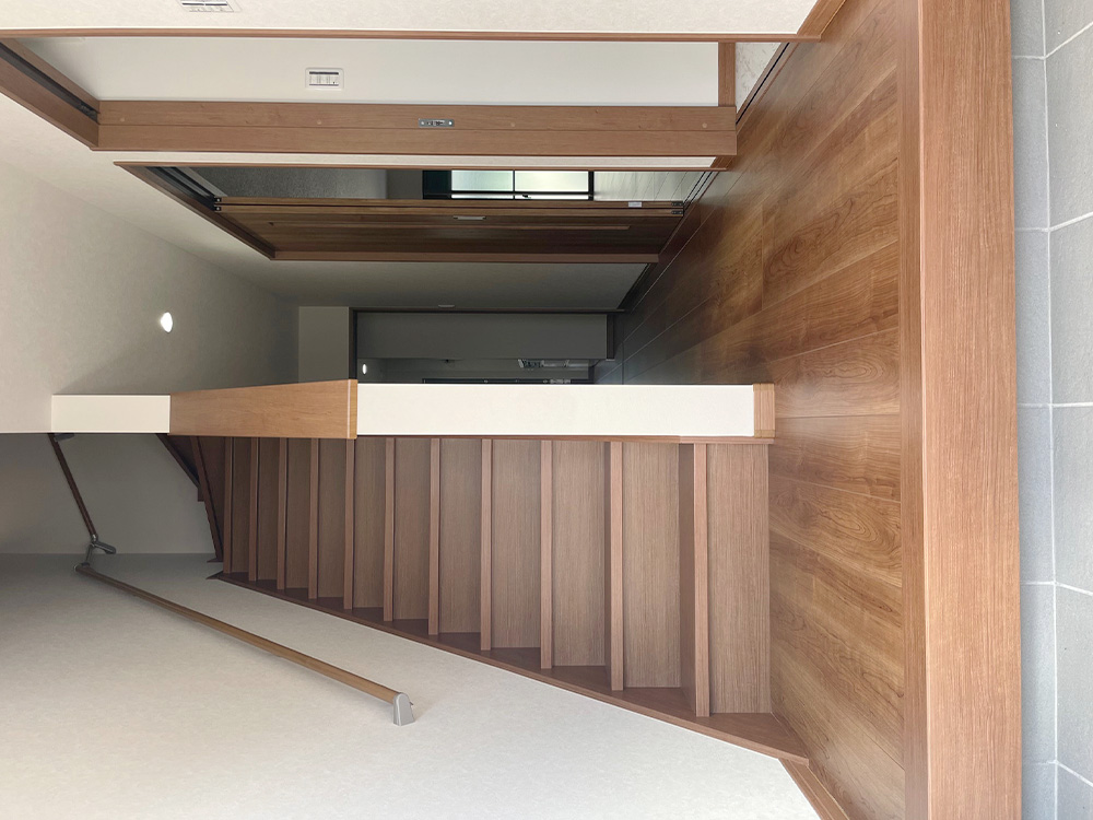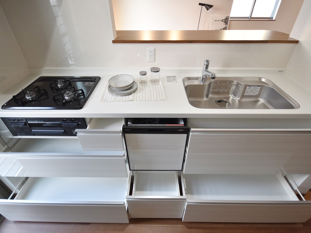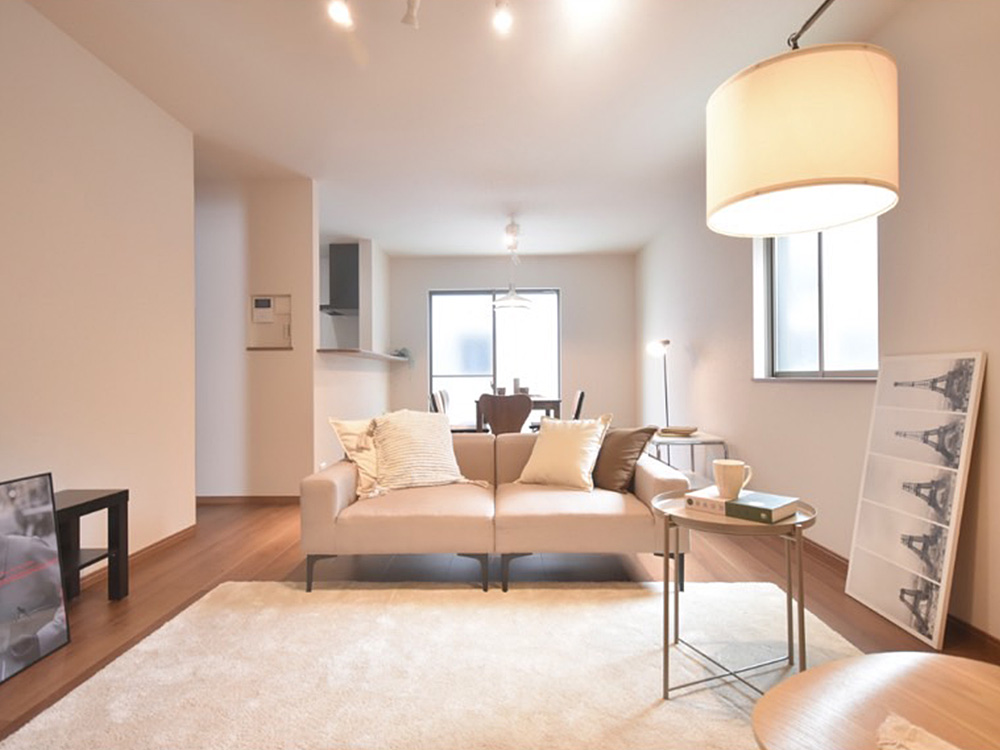 - リビングは明るい日差しが心地よく広がり、家族がゆったりと過ごせる落ち着いた空間になっています。キッチンには大容量の収納を備えており、調理器具や食材をすっきり片づけられる使い勝手の良い設計です。暮らしの中で自然に快適さを感じられる住まいです。